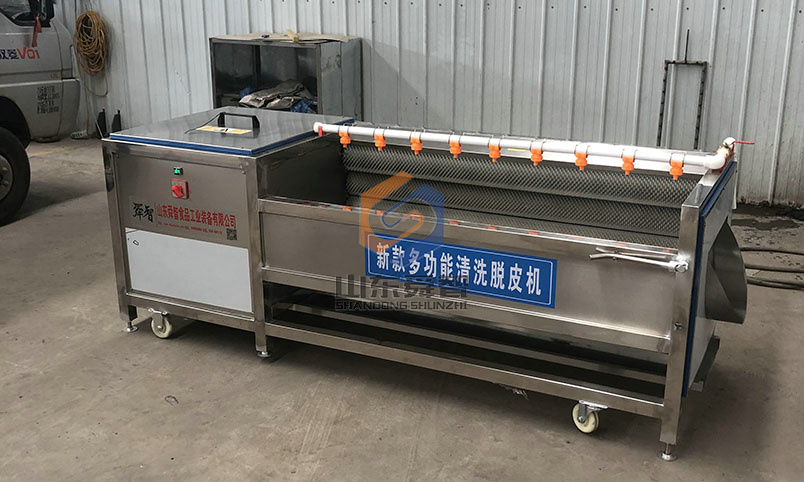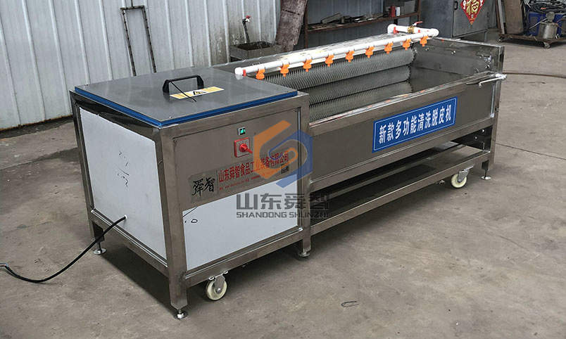 毛輥清洗機又叫毛刷清洗機,設備原理是利用毛輥的轉動,毛刷與水中物料的直接接觸,物料間的相互摩擦,來去掉附著在被清洗物上的泥土、雜質(zhì),使物料表面的污物刷除洗凈,采用高壓水噴淋水流沖擊清洗,徹底清除雜質(zhì)。整機采用優(yōu)質(zhì)304不銹鋼材質(zhì)制作,不銹蝕、清潔衛(wèi)生。