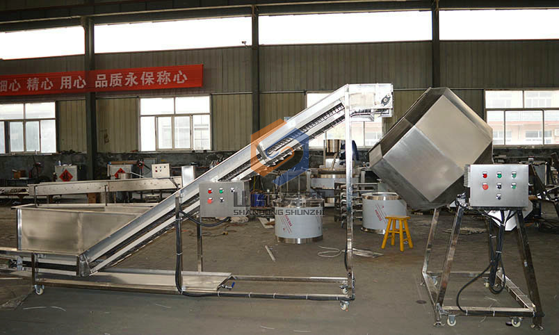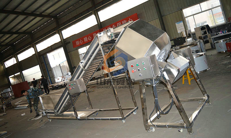 采用減速電機(jī),齒輪傳動(dòng),使油炸的食品不破碎,自動(dòng)攪拌;拌料均勻,操作方便;產(chǎn)量高;不銹鋼制作,滾桶的轉(zhuǎn)速和傾斜度都可以調(diào)節(jié),給粉量也可以控制; 可以對(duì)任何食品進(jìn)行調(diào)味、拌料。根據(jù)油炸食品的形狀特點(diǎn)設(shè)計(jì)制造的,有圓盤(pán)型、八角形兩種形式,是油炸食品調(diào)味、拌料的專(zhuān)用設(shè)備,是目前國(guó)內(nèi)最先進(jìn)的油炸食品調(diào)味設(shè)備。