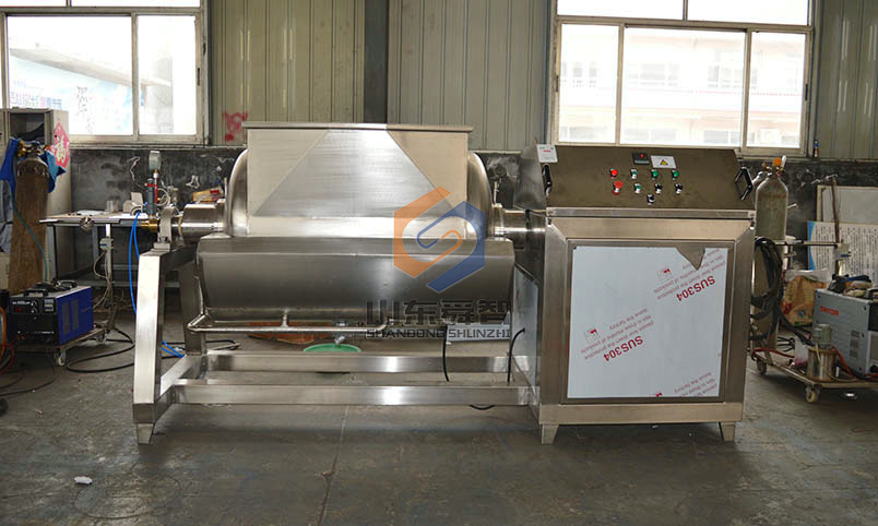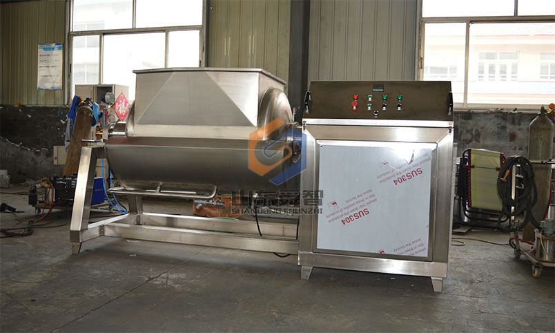 真空滾揉機 工作原理 真空滾揉機在真空狀態(tài)下,利用物理沖擊原理,讓肉塊或肉餡在滾筒內(nèi)上下翻動,相互撞擊、摔打,從而達到腌漬作用。腌漬液被肉充分地吸收,增強肉的結(jié)合力及彈性,...